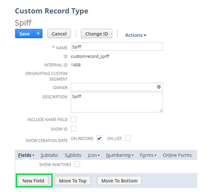 Moving the SPIFF Custom Record to the New Subtab
