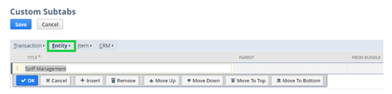 - On the Subtabs sublist, ensure SPIFF Management is visible, and the Show box is checked