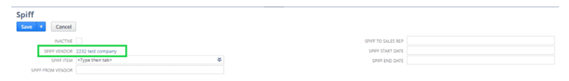 - Automatically default the Vendor value on new SPIFF records