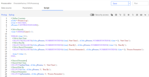 The process called TestProcess1 is a sample process that shows how to call the SYS.ProcessLog process. It also has the details on how to provide the parameters to the SYS.ProcessLog process. For pProcess, we use the GETPROCESSNAME function to find the name of the TestProcess1 process although we can manually set it as a constant. The time parameter can be in any format but we use the commands called NEWDATEFORMATTER and FORMATDATE to help us get the time in the format that is easy to read. The last parameter, pParameters, is the concatenation of all parameters in the TestProcess1 process, which are pYear and pAccount.