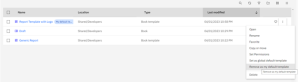 The default template setting can be removed by clicking the report option and then “Remove as my default template”.